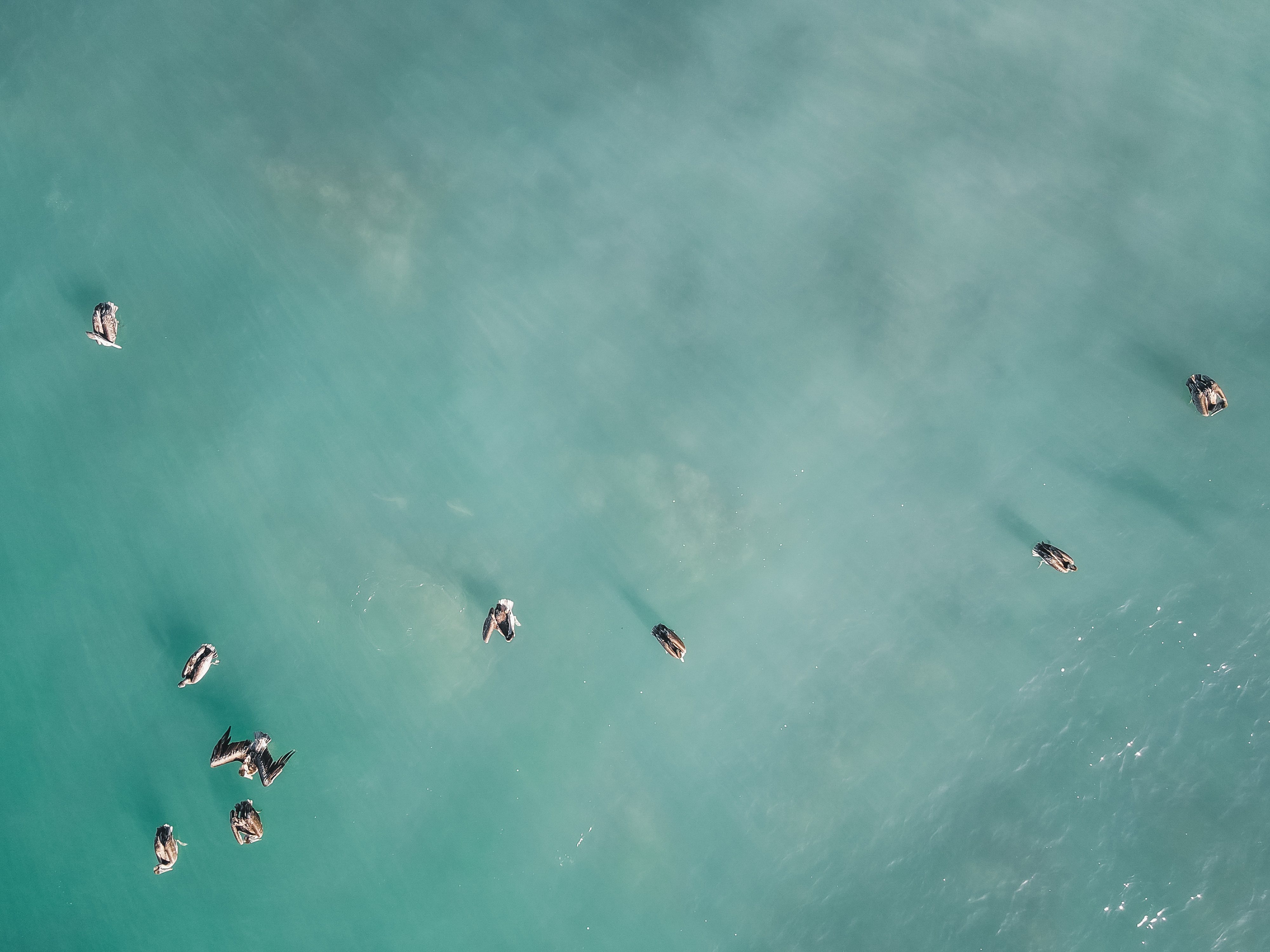 Nous descendons ensuite un escalier qui donne sur la plage. Nous sommes à nouveau surpris par la beauté de la nature : une centaine de pélicans s’est réunie pour une partie de pêche. Le spectacle est génial et me donne des envies de film. Je lance le drone en direction de la horde d’oiseaux. Un premier passage vers le large en hauteur donne de premières belles images. Et si je prenais un peu plus de risque. Je descends en altitude. Je fais un second passage en longeant la plage en direction du soleil. Dans un beau contre-jour, les pélicans décollent les uns après les autres dans un majestueux ballet. Aller, un dernier passage et on rentre. Je fais demi-tour. Je repars à la même altitude mais à une allure un peu plus rapide. Le début de la vidéo est parfait. Les oiseaux décollent de part et d’autre de la trajectoire du drone. Je continue ma progression. Au loin, deux pélicans décollent en même temps. Leur poids les handicape dans leurs mouvements. Je continue d’avancer, l’un des deux pélicans se rapproche de plus en plus, nous sommes sur une route de collision assurée. Ni lui, ni moi ne pouvons modifier notre trajectoire. Le pélican se prend le drone en pleine tête. Après une bascule sur la droite, le drone parvient à se stabiliser à nouveau. Je le ramène en urgence. Ouf, plus de peur que de mal ; la caméra est entière et le drone n’a rien.  De retour sur la plage, nous décidons de nous prendre en photo. Je commence à positionner le drone. Deux personnes sont dans le cadre, je décale un peu le drone, encore un peu… Ce n’est pas le pélican qui aura eu raison du drone, mais bien le palmier en face de nous à moins d’un mètre !! Les deux hélices avant sont touchées, heureusement nous en avons de rechange. Le reste fonctionne normalement et nous pouvons continuer à prendre des images magiques de ces paysages fantastiques.