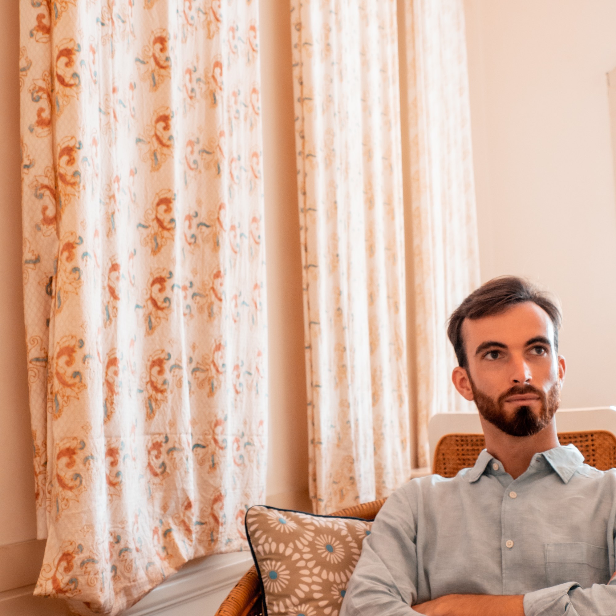 Hors temps de Covid, cette station balnéaire, située sur la côte Sud-Ouest de Bali, est le repère des expatriés. Aujourd’hui, la ville a retrouvé un calme forcé et vit au rythme de la pandémie, suspendue aux décisions futures. Les embouteillages ont disparu, beaucoup de lieux ont fermé leurs portes et les balinais espèrent fortement une réouverture prochaine des frontières. Depuis un an et la perte des revenus liés à son activité principale, l’île vivote. Ce climat se ressent fortement : nous sommes régulièrement alpagués par les petits commerçants de la rue qui tentent de résister à la crise. En nous promenant sur la plage, nous constatons que tous les secteurs sont touchés. En cherchant notre chemin, nous entrons par erreur dans un hôtel de luxe en bord de plage totalement désert, devenu presque l’ombre de lui-même.