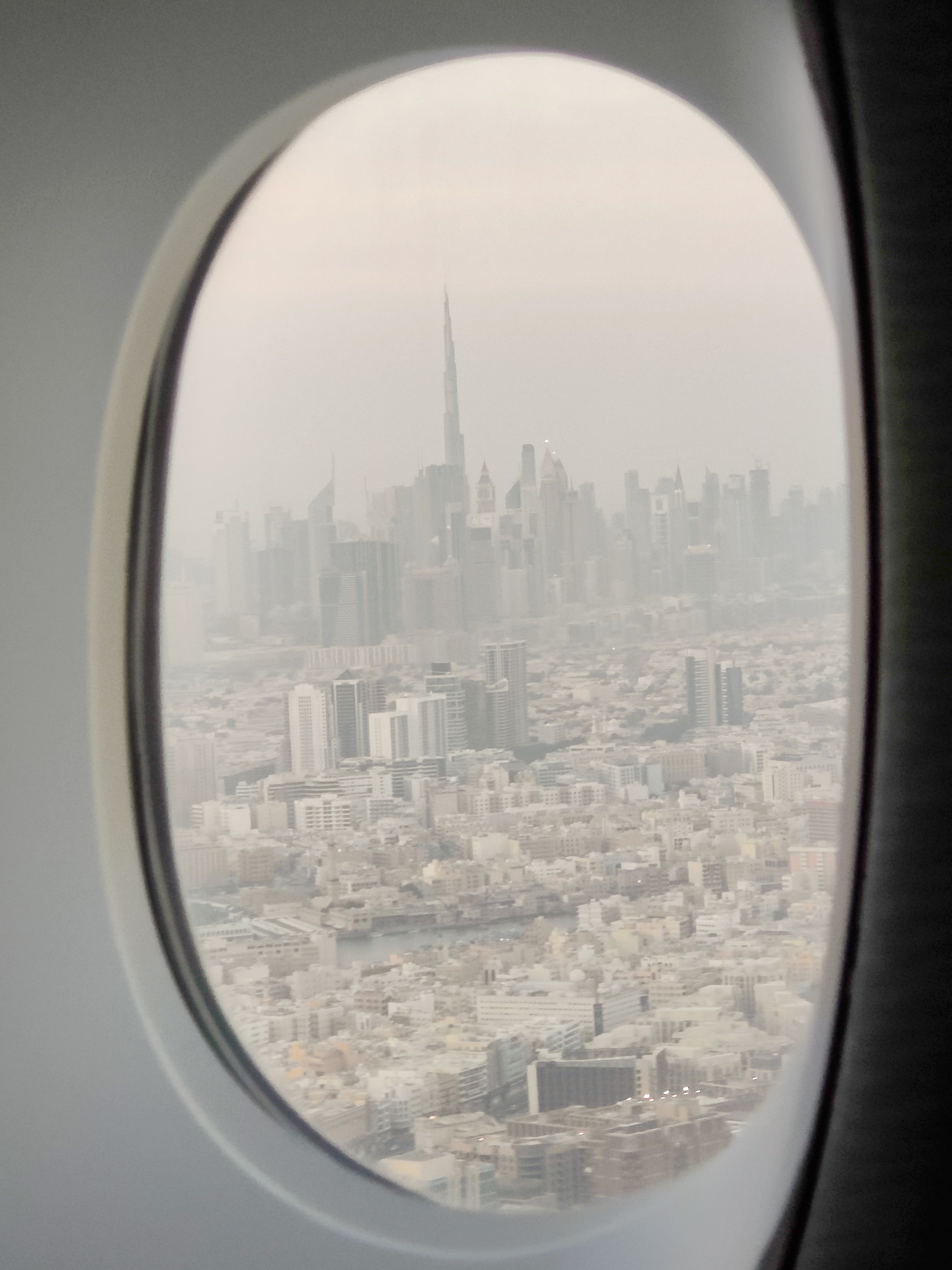 Le vol se déroule sans encombre : Maël fait sa nuit comme si de rien n’était, ne se réveillant que lorsque cela est vraiment obligatoire. Il est dans le berceau devant nous, presque déjà trop petit pour lui. L’escale à Dubaï est rapide. Nous repartons pour la deuxième partie du vol, rythmée par les siestes, les temps de jeu et les repas. A deux, nous parvenons à gérer les moments plus compliqués. Il semble rassuré par notre présence et ne s’inquiète pas de ce qu’il est en train de vivre, nous voyant détendus nous aussi.