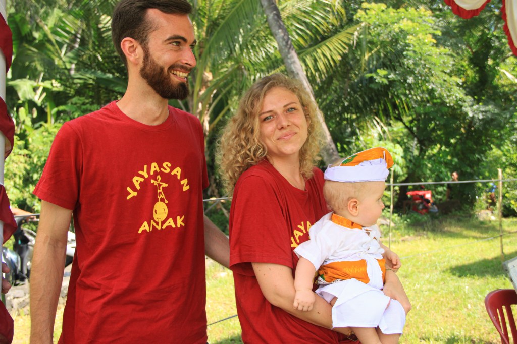 Parfois cet accueil est même difficile à gérer et nos cultures peuvent s’opposer. Lors de l’événement des 20 ans de l’association, nous avons rencontré de nombreuses mamans balinaises qui attendaient de prendre Maël, quelle que soit la situation dans laquelle il se trouvait. Alors qu’il était en train de manger, elles se postaient devant nous, elles nous faisaient signe pour le prendre et restaient plantées si nous n’acceptions pas. C’est assez déroutant. Mais en expliquant calmement que ce n’est pas possible et en gardant le sourire, la compréhension revient et chacun découvre les habitudes culturelles de l’autre.