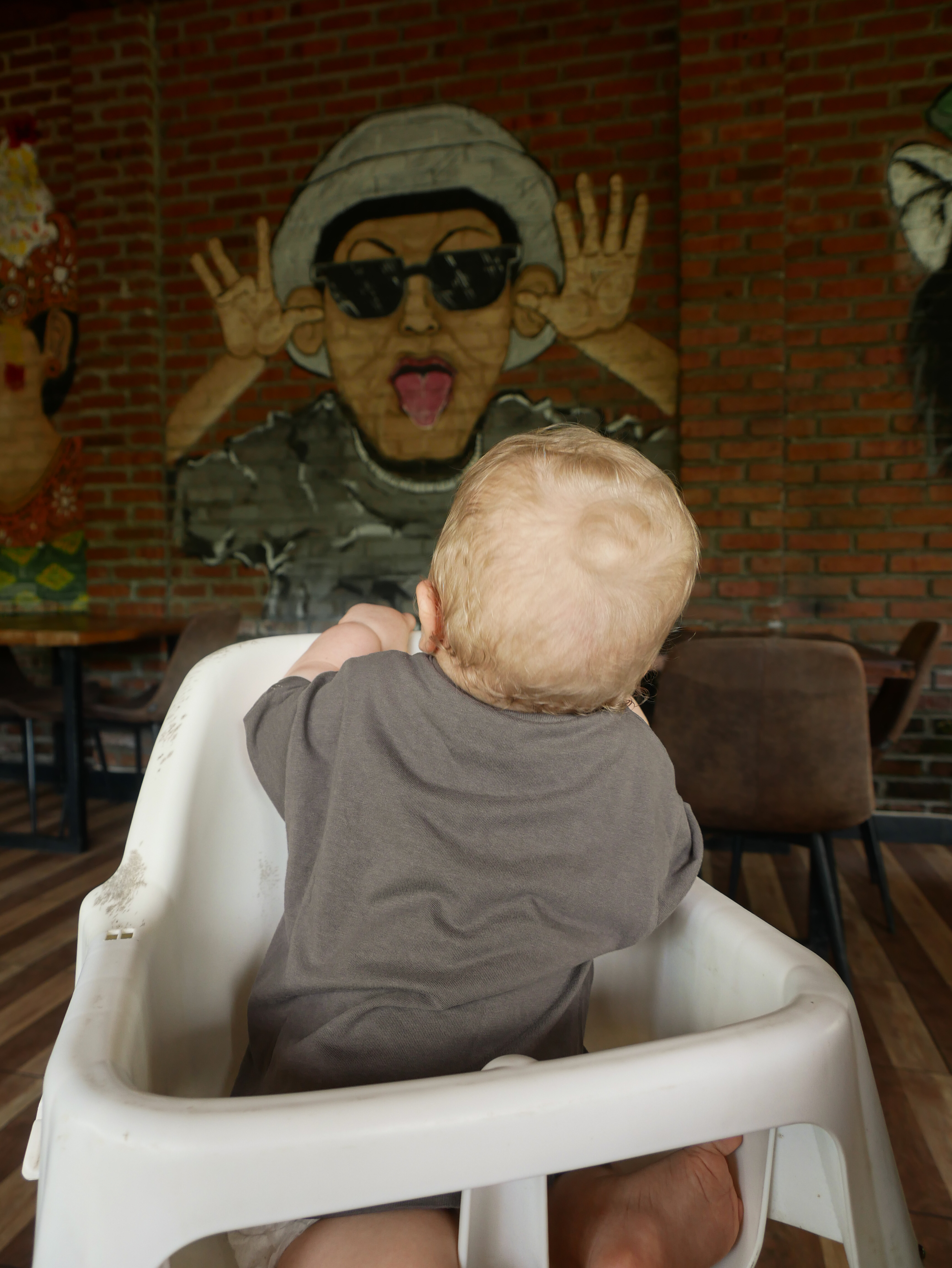 Voici un autre point fondamental du voyage avec un bébé : faire confiance aux locaux. Ils ont aussi des enfants et peuvent vraiment être d’une grande aide. Nous le savions déjà en partant, l’Indonésie et particulièrement Bali, accorde une place importante aux enfants. Ils sont considérés comme des demi-dieux et partout où nous passons la présence d’un enfant provoque des sourires de sympathie. Dans les restaurants, même les plus petits warung, nous avons toujours eu une chaise bébé.